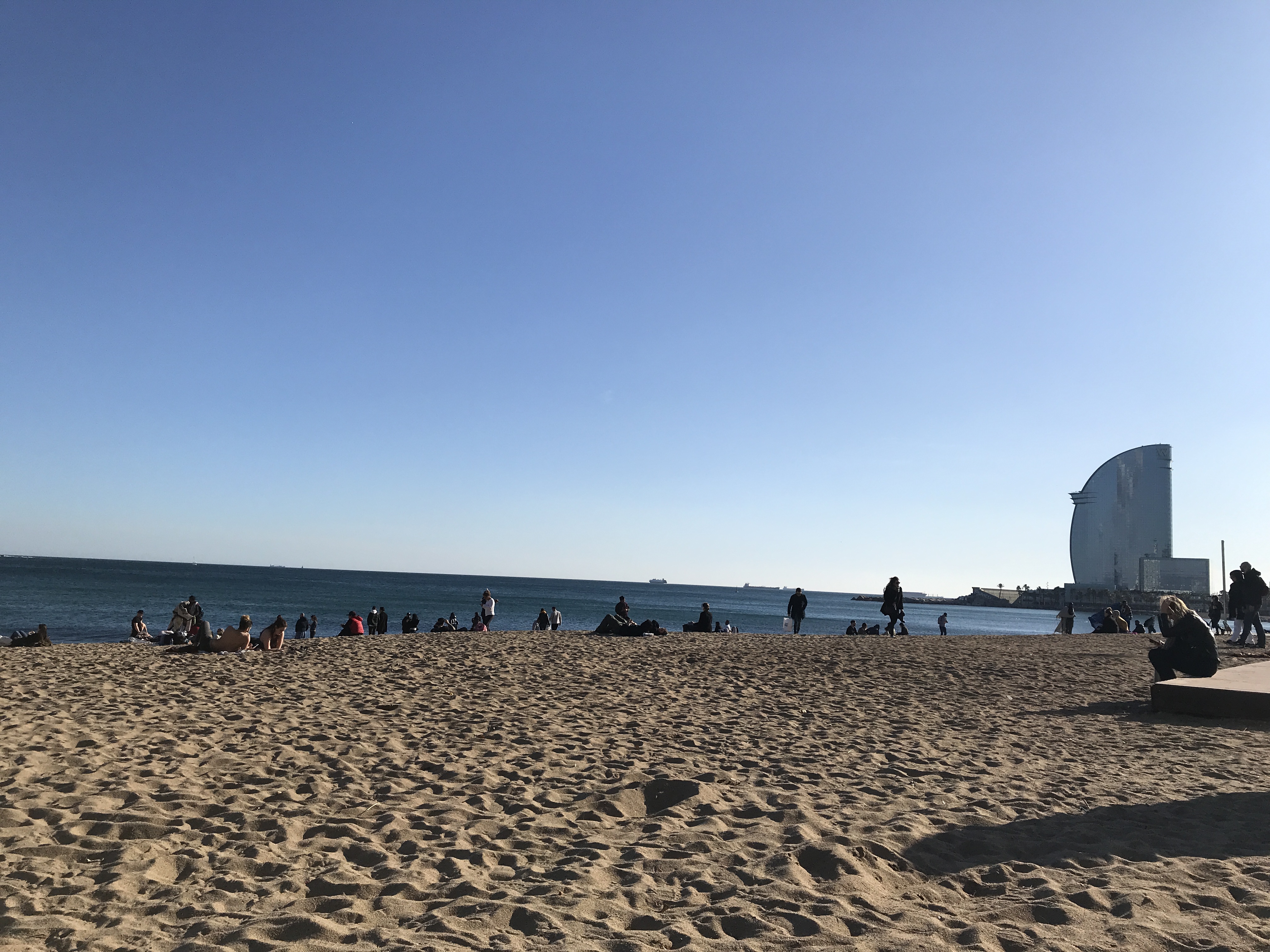 Some of the beautiful things about Barcelona are the warmer climate and the peoples’ love to be outside. I noticed that people would be congregating and enjoying the beaches no matter the time of day and thought this reflected the slower speed of life in Catalan culture. One of my favorite things I witnessed on the beach was a group of older boys playing soccer with their team. To me, the beach seemed to be an unconventional place to play, but I had an amazing time watching them skillfully maneuver their way through the sand. I always brought my visitors to Barceloneta because I wanted them to see both the sea and mountain sides of Barcelona. One day, I even got into the Mediterranean and was freezing, but it’s something I will never forget.